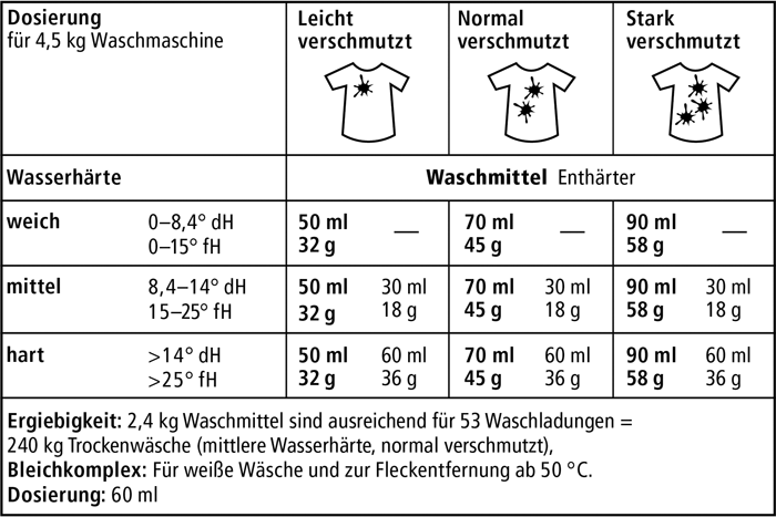 Nicht geeignet für empfindliche Feinwäsche, Wolle und Seide. Hierfür empfehlen wir Sonett Olivenwaschmittel für Wolle und Seide. Enthärter in die Einfüllschublade der Waschmaschine und Waschmittel in der Dosier-Waschkugel direkt in die Trommel geben.