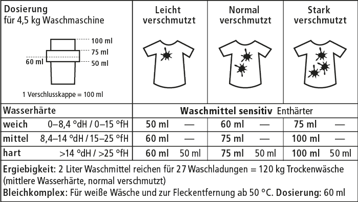 Hinweise für Allergiker: Rein pflanzliche Tenside, Ohne petrochemische Inhaltsstoffe, Ohne Duftstoffe, Farbstoffe, Komplexbildner, Ohne Konservierungsmittel, Ohne Enzyme, ohne Gentechnik, 100% biologisch abbaubar